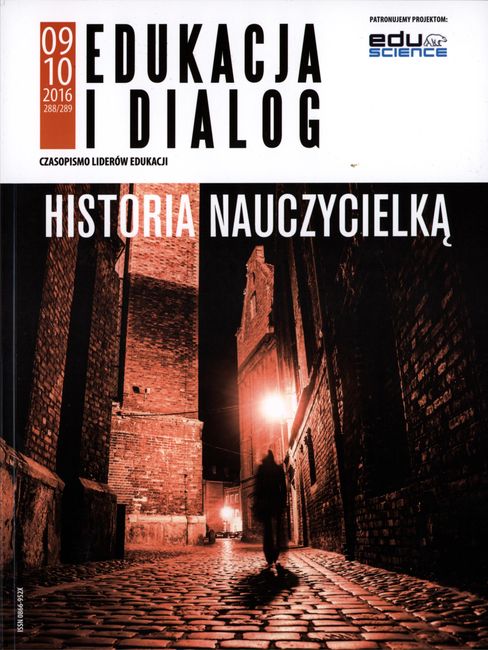 Numer 09/10/ 2016 poświęcony historii, wędrówce w przeszłość, najnowszym badaniom najstarszych ksiąg, edukacji historycznej – zawiera między innymi : Niewykorzystany potencjał muzeum? - komentarz redaktora naczelnego Witolda Kołodziejczyka ; Opowiem Wam o historii. Moja opowieść o tych, którzy badali dzieje (Elżbieta Binswanger-Stefańska) ; 1050-lecie chrztu Polski i jego wpływ na dzieje jęyzka polskiego (Daniela Podlawska) ; Najcenniejsze wśród książek w Polsce - średniowieczne rękopisy (Jacek Soszyński) ; Utracone kodeksy średniowieczne na przykładzie przedwojennych zbiorów Biblioteki Narodowej (Jerzy Kaliszuk) oraz przykłady edukacji historycznej w muzeach ; Historia – nauczycielką życia? (Maciej Wierzchnicki).